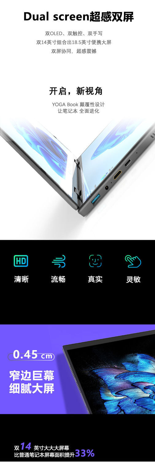 14寸折叠屏笔记本电脑YOGABOOK双屏学习办公设计英特尔大学生游戏
